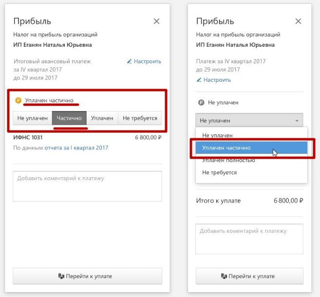 Новый статус «уплачен частично»